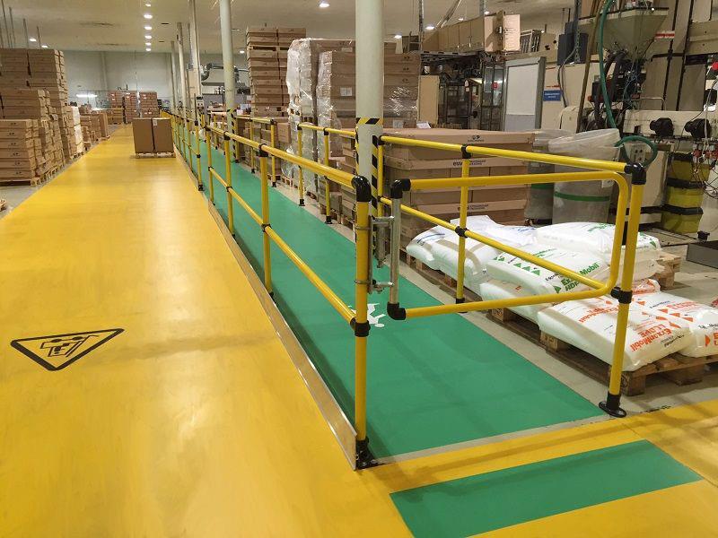在人员和物料搬运设备或车辆同时工作的区域,安全护栏是必不可少的。通道护栏能够在人员与车辆间建立起物理屏障,并在设施周围创建出一条安全的行走路线,降低车辆对人员带来的风险。